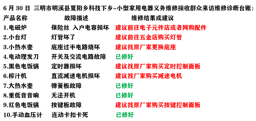 以下是紅色筑夢(mèng)隊(duì)在本次“三下鄉(xiāng)”義務(wù)家電維修社會(huì)實(shí)踐活動(dòng)中的成果: