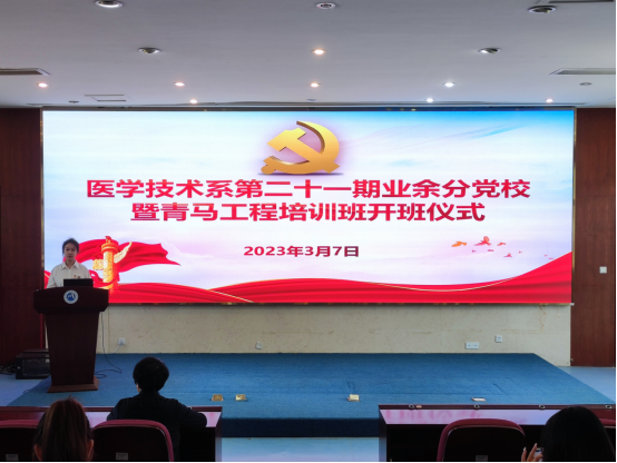 3月7日,醫(yī)學(xué)技術(shù)系第二十一期業(yè)余分黨校暨青馬工程培訓(xùn)班開班。醫(yī)學(xué)技術(shù)系黨總支書記柯瓊鶯出席開班儀式并作動員講話。醫(yī)學(xué)技術(shù)系副書記林燕,學(xué)生黨支部書記、團總支書記、團總支副書記以及培訓(xùn)班學(xué)員參加開班儀式。