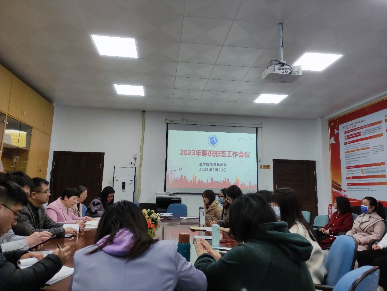 2月23日,醫(yī)學技術系召開2023年意識形態(tài)工作會議。醫(yī)學技術系意識形態(tài)工作領導小組及辦公室成員參加會議,系主任翁繩和、黨支部委員、工會小組長等列席會議,會議由系黨總支書記柯瓊鶯主持。