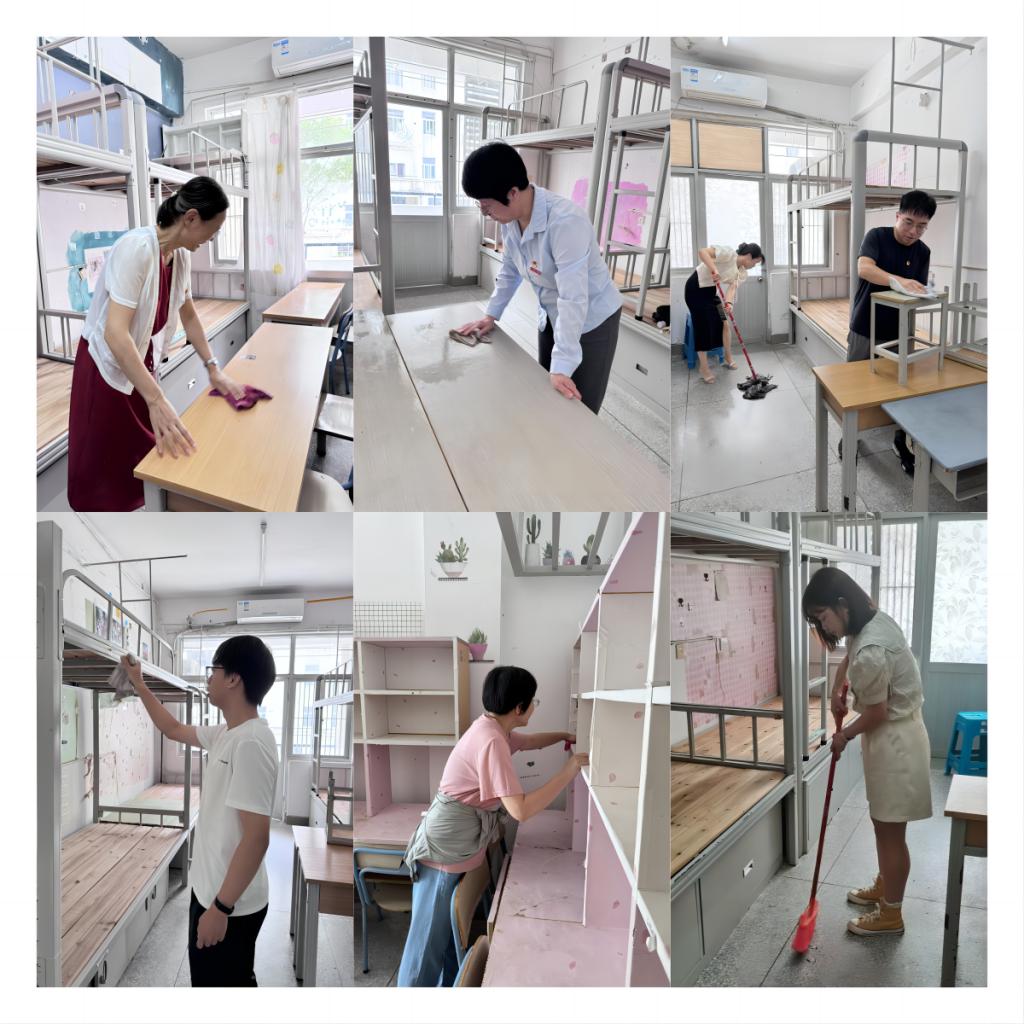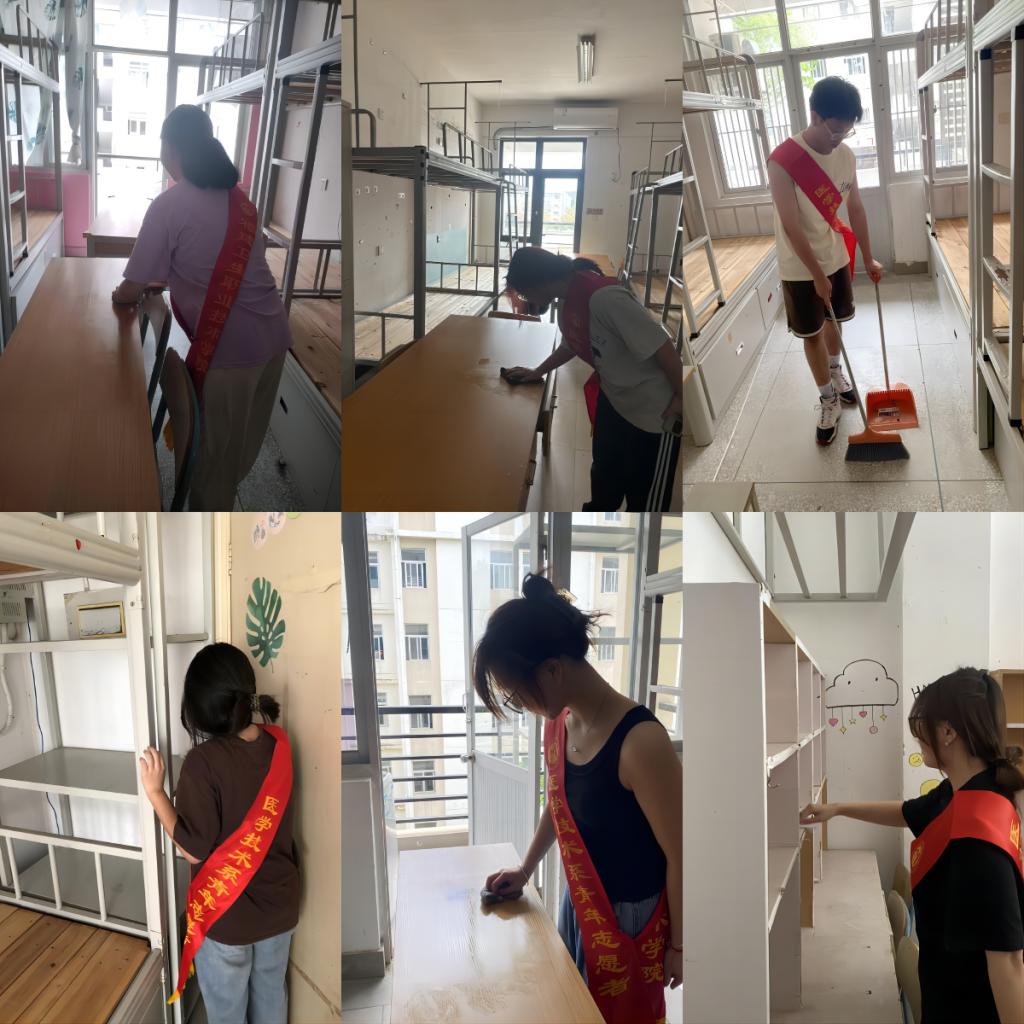 志愿者們手持清潔工具,以高度的責(zé)任感和無(wú)私的奉獻(xiàn)精神,對(duì)每間新生宿舍進(jìn)行了全面清掃。在清掃過程中,大家相互配合,發(fā)揚(yáng)了不怕臟、不怕累的優(yōu)良作風(fēng)。從擦拭門窗到整理床鋪,從清掃地面到歸置物品,每處都凝聚著他們對(duì)新同學(xué)的熱情與期待。同時(shí)仔細(xì)檢查每張桌椅,并確保門窗正常使用,