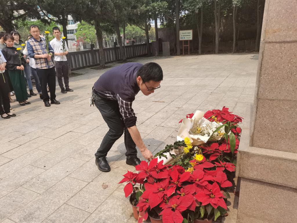 祭奠英雄,筑牢信仰之魂。陵園內(nèi)松柏蒼翠,紀(jì)念碑肅穆聳立,在莊嚴(yán)肅穆的紀(jì)念碑前,全體人員向革命烈士肅立,表達(dá)對(duì)革命先烈的無(wú)限哀思,在烈士紀(jì)念碑前,師生列隊(duì)向革命烈士默哀三分鐘致敬。師生代表向革命烈士鞠躬敬獻(xiàn)鮮花,重溫入黨誓詞,表達(dá)對(duì)烈士沉痛的哀悼和深切的思念。