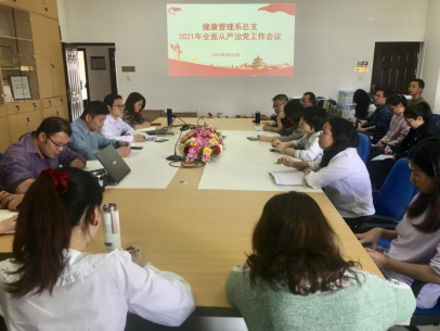 4月22日,健康管理系在系部會議室召開2021年全面從嚴治黨工作會議,會議總結(jié)健康管理系2020年全面從嚴治黨工作,部署2021年重點工作任務(wù),會議由健康管理系黨總支書記黃曦主持。