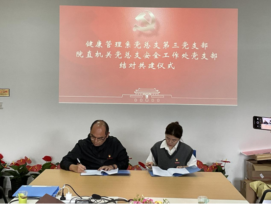同心共建 攜手前行丨健康管理系黨總支第三支部與院直機關(guān)黨總支安全工作處黨支部舉行結(jié)對共建簽約儀式