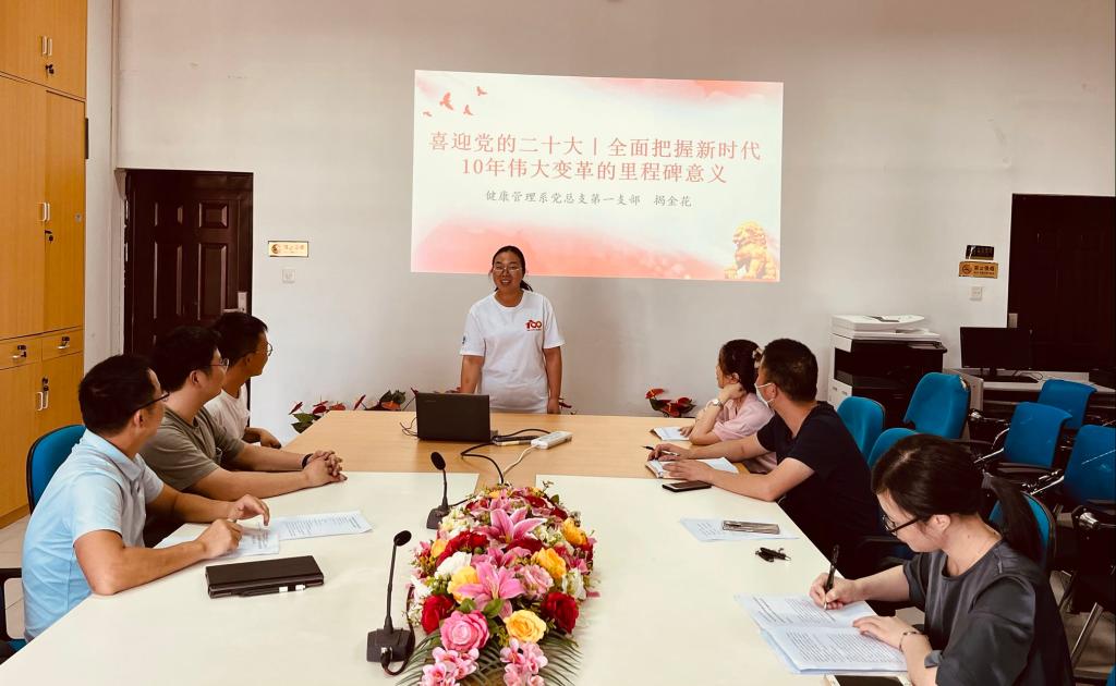 2022年9月30日上午,為迎接黨的二十大勝利召開,深入學(xué)習(xí)習(xí)近平總書記關(guān)于高校黨的建設(shè)重要論述,為加強(qiáng)黨員黨建知識學(xué)習(xí),增強(qiáng)黨性修養(yǎng),進(jìn)一步提高我系基層黨務(wù)工作者黨建工作水平和業(yè)務(wù)技能,我系在會議室舉辦首屆基層黨務(wù)干部職業(yè)能力初賽,健康管理系黨總支全體黨務(wù)干部參加。