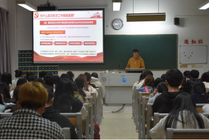 課上,苗航針對“意識形態(tài)工作的內(nèi)涵”、“黨的歷代領(lǐng)導(dǎo)人對意識形態(tài)工作的重視”、“意識形態(tài)領(lǐng)域面臨的風(fēng)險與挑戰(zhàn)”等內(nèi)容開展解讀,帶領(lǐng)同學(xué)們學(xué)習(xí)了習(xí)近平總書記關(guān)于意識形態(tài)工作的重要論述,強(qiáng)調(diào)意識形態(tài)工作是我們黨一項極端重要的工作,結(jié)合了國內(nèi)外案例講解意識形態(tài)工作的重要性。希望同學(xué)們能夠提升辨別是非能力,自覺抵御外來干擾,堅定理想信念,規(guī)范自我言行,不斷修身養(yǎng)性、知敬畏守底線,筑牢思想防線,樹立正確的世界觀、人生觀和價值觀,堅定共產(chǎn)主義信念,堅持中國共產(chǎn)黨領(lǐng)導(dǎo),勇于并善于同各種錯誤思潮作斗爭,使大學(xué)生成為社會主義事業(yè)的建設(shè)者和合格的接班人。