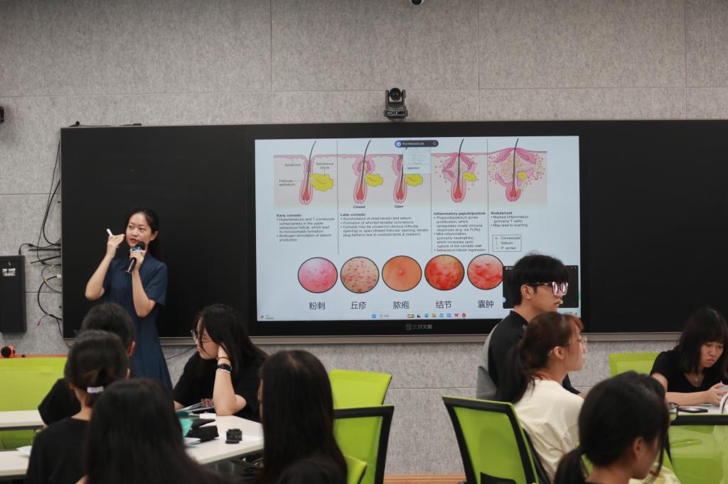 為貫徹落實“健康中國”戰(zhàn)略,9月28日上午,健康管理系第一黨支部與福州市中醫(yī)院第三黨支部在智慧教室共同舉辦了第六屆“中國痤瘡周”健康中國公益活動。此次活動由科普講座、專家義診兩部分組成。講座由福州市中醫(yī)院皮膚科張婧博士主講,全校師生代表參加。該講座指導(dǎo)公眾科學(xué)認(rèn)識痤瘡,重視痤瘡的治療和護(hù)理,預(yù)防痤瘡的發(fā)生,提高當(dāng)代大學(xué)生對身心健康的關(guān)注度。講座結(jié)束后,由福州市中醫(yī)院張婧、林秀敏醫(yī)生為有痤瘡困擾的師生展開中醫(yī)義診活動,有大批師生前往咨詢。本次黨日活動通過師生們感興趣的“痤瘡”話題,將中醫(yī)傳統(tǒng)文化的優(yōu)勢與特色通過講座的形式深深地播種到師生們的心里。讓中醫(yī)的診療手段、防治方法能夠?qū)嶋H應(yīng)用于點點滴滴的生活中,做到入心入腦入生活。