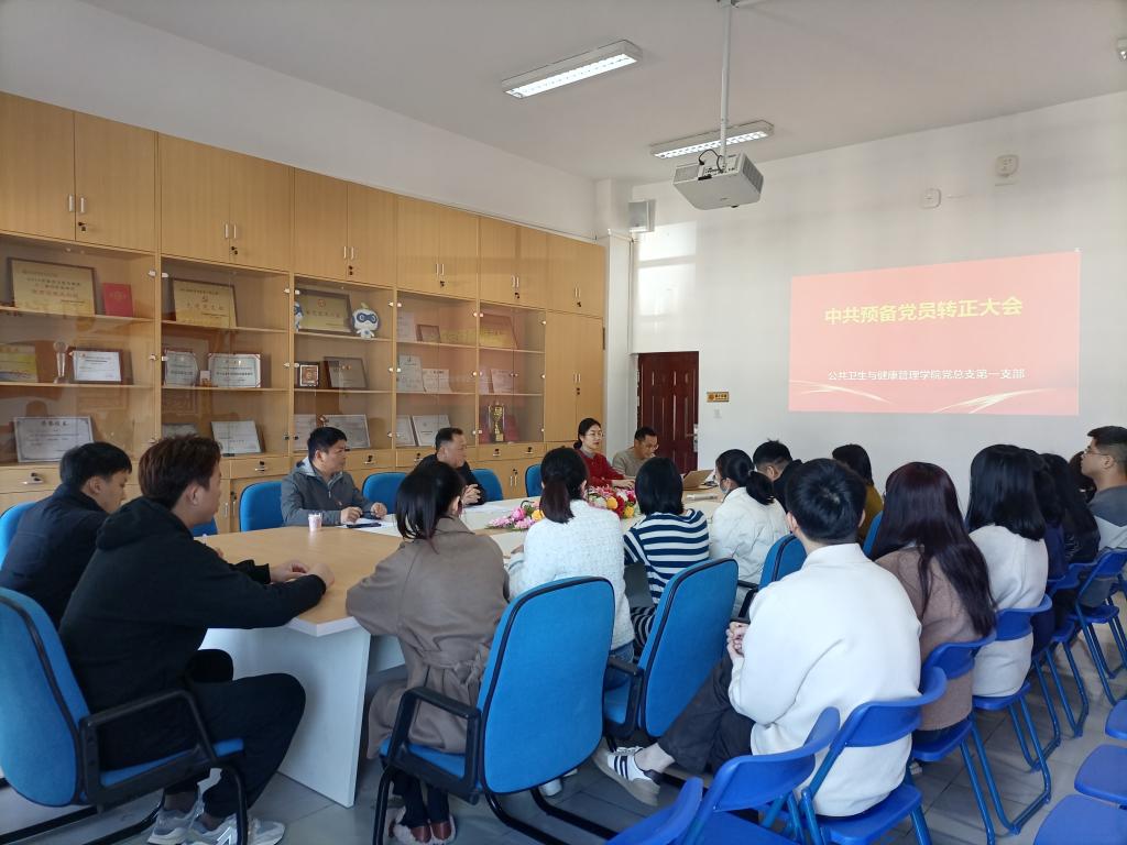 2023年12 月25日,公共衛(wèi)生與健康管理學(xué)院黨總支第一支部舉行預(yù)備黨員轉(zhuǎn)正大會(huì),大會(huì)討論并審議預(yù)備黨員李其鏗同志轉(zhuǎn)為正式黨員問題,支部共有黨員20名,正式黨員19人,實(shí)到正式黨員15名。