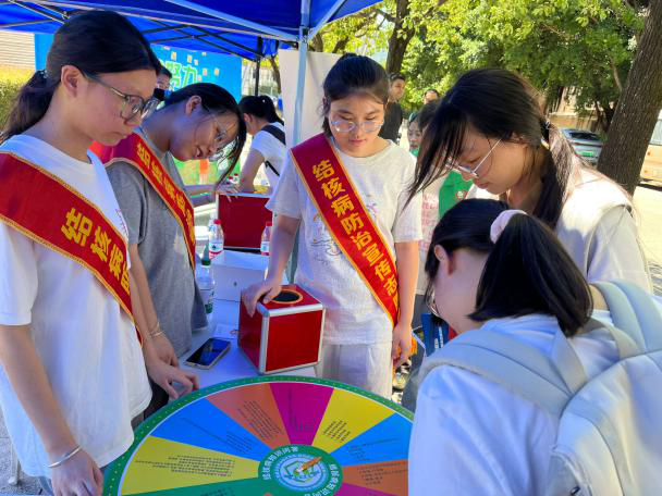 為鞏固同學(xué)們對(duì)結(jié)核病防治核心知識(shí)的掌握,并提升他們對(duì)結(jié)核病的關(guān)注與重視,健康學(xué)院的預(yù)防醫(yī)學(xué)專業(yè)教師指導(dǎo)同學(xué)們開展了一系列專業(yè)實(shí)踐活動(dòng)。通過設(shè)置結(jié)核病大轉(zhuǎn)盤游戲、將結(jié)核病知識(shí)整理成卡片以及設(shè)置結(jié)核病留言板等趣味活動(dòng),增加了互動(dòng)性和趣味性。在面對(duì)同學(xué)們回答錯(cuò)誤或不理解的問題時(shí),結(jié)核病志愿者進(jìn)行針對(duì)性的講解,有效促進(jìn)了大家對(duì)結(jié)核病知識(shí)的理解,極大地喚起了同學(xué)們對(duì)結(jié)核病的重視。