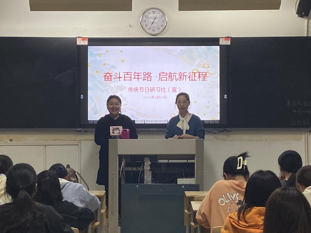 黨史學習教育基礎在學習、目的在教育,將黨史學習教育融于立德樹人全過程。2021年4月,馬克思主義學院教師對指導的社團成員持續(xù)開展“百年黨史 精神永存”系列宣講活動,讓同學們走進歷史深處,了解百年大黨的夢想與追求、情懷與擔當。