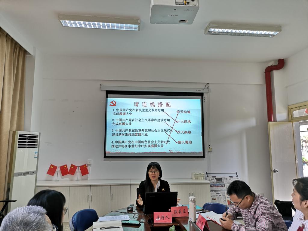 2021年5月6日上午,直屬馬克思主義學(xué)院黨支部書(shū)記熊美蘭以《百年回響 初心如磐 傳承榮光》為題,為支部全體黨員作了黨史學(xué)習(xí)教育專(zhuān)題黨課報(bào)告。