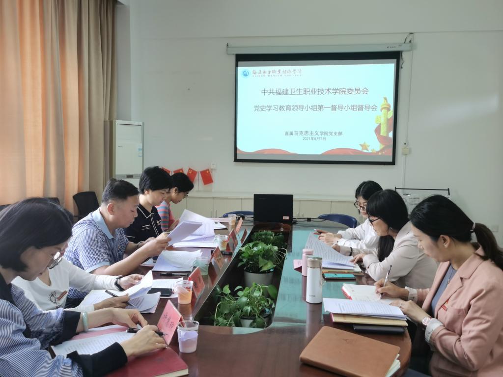 2021年5月7日上午,校黨委書(shū)記曾武祈、組織統(tǒng)戰(zhàn)部部長(zhǎng)吳華、護(hù)理學(xué)院黨總支書(shū)記謝濤、直屬人文體育部黨支部書(shū)記阮秋容和護(hù)理學(xué)院黨總支專職組織員許慧瓊等組成的校黨委黨史學(xué)習(xí)教育領(lǐng)導(dǎo)小組第一指導(dǎo)小組,蒞臨馬克思主義學(xué)院進(jìn)行指導(dǎo)。直屬馬克思主義學(xué)院黨支部書(shū)記、黨史學(xué)習(xí)教育領(lǐng)導(dǎo)小組組長(zhǎng)熊美蘭主持會(huì)議,并向指導(dǎo)小組匯報(bào)了馬克思主義學(xué)院黨史學(xué)習(xí)教育開(kāi)展情況。