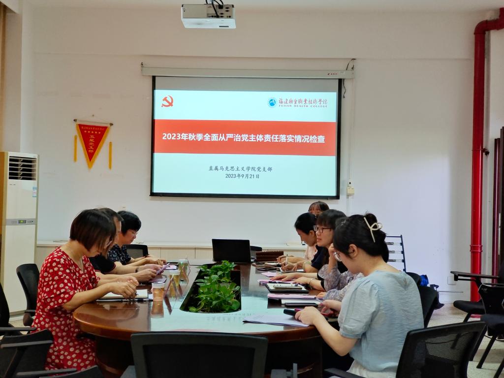 2023年9月21日,直屬馬克思主義學院黨支部在行政樓107迎接校2023年秋季全面從嚴治黨主體責任落實情況檢查工作。校黨委主題教育協(xié)調推進一組組長、校黨委書記曾武祈,協(xié)調推進一組組員、組織統(tǒng)戰(zhàn)部部長謝濤,協(xié)調推進一組組員、組織統(tǒng)戰(zhàn)部干部科科長張云霞出席會議,直屬馬院黨支部書記熊美蘭及其他支部委員參加會議。