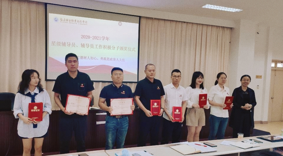 學生工作部宋維部長宣讀了《關于表彰2020-2021學年星級輔導員、輔導員工作積極分子的決定》,高長花、陳清清、翁武峰、葉劍、高繼璐、鄭衛(wèi)敏、林詩雨、蔣程序、張龍、張夢潔、鄒艷輝、陳香、李英、宗帥、王開曄共15名老師榮獲“星級輔導員”稱號,童輝燕、張?zhí)m雋、龍慧、李曉佳、王延昇、李芳琴、吳若云共7名老師榮獲“輔導員工作積極分子”稱號。