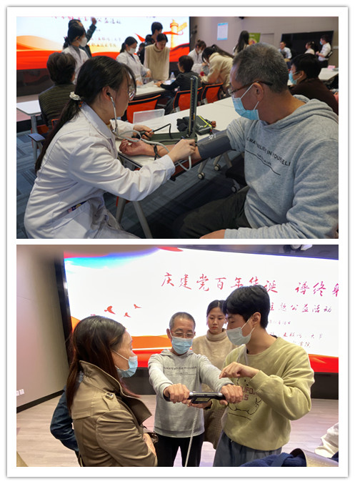 針對(duì)老年人潛在或長(zhǎng)期患有慢性病,易引發(fā)不良后遺癥及并發(fā)癥等問(wèn)題,李益梅和王國(guó)浩兩位老師開(kāi)展相應(yīng)的體檢常識(shí)科普,指導(dǎo)學(xué)員們?nèi)绾胃鶕?jù)身體狀況科學(xué)合理選擇體檢項(xiàng)目,現(xiàn)場(chǎng)為老年學(xué)員們檢測(cè)血壓、血脂情況,并給予生活上的建議。