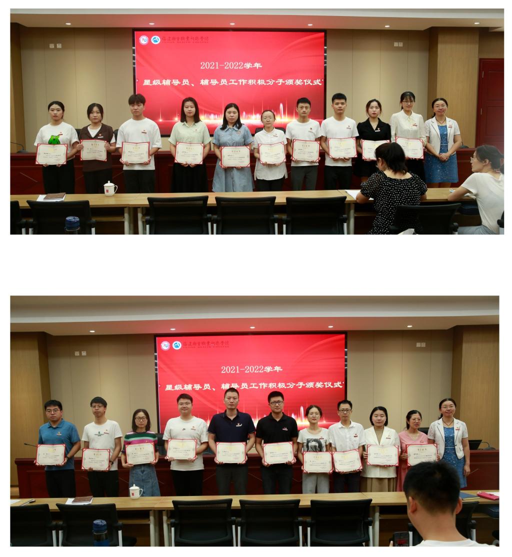 學生工作部部長陳俊穎宣讀了《關(guān)于表彰2021-2022學年星級輔導員、輔導員工作積極分子的決定》,并向獲獎個人表示祝賀。