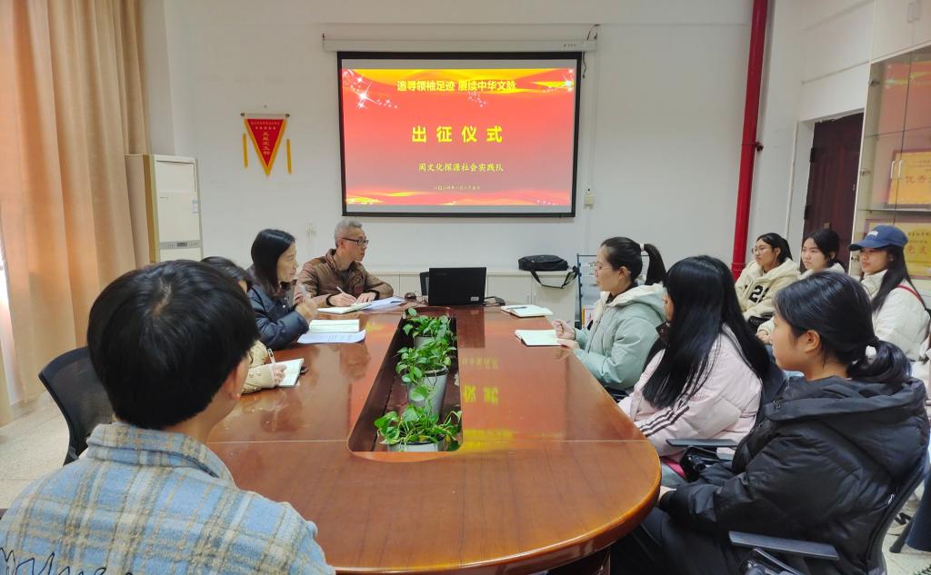 2024年1月25日下午,出征儀式在厚德樓107會議室舉行,儀式由馬克思主義學院副院長來朋珍主持,黨支部副書記賴文金作動員講話。隨后,胡濟林副教授與實踐隊隊員作《閩文化的過去和現在》主題交流,探討了閩文化歷史沿革、精神內核和影響力。