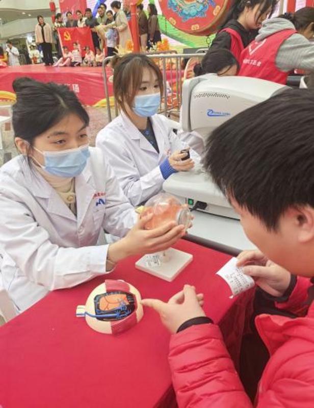 為響應《“十四五”全國眼健康規(guī)劃(2021-2025年)》的政策號召,近日,我校在閩侯萬家廣場舉辦一場兒童青少年近視防控科普宣傳與視力篩查活動。此次活動旨在提升學生及家長對近視防控的意識,幫助學生和家長了解近視的成因、危害及預防方法,及時發(fā)現(xiàn)視力問題并采取有效干預措施。