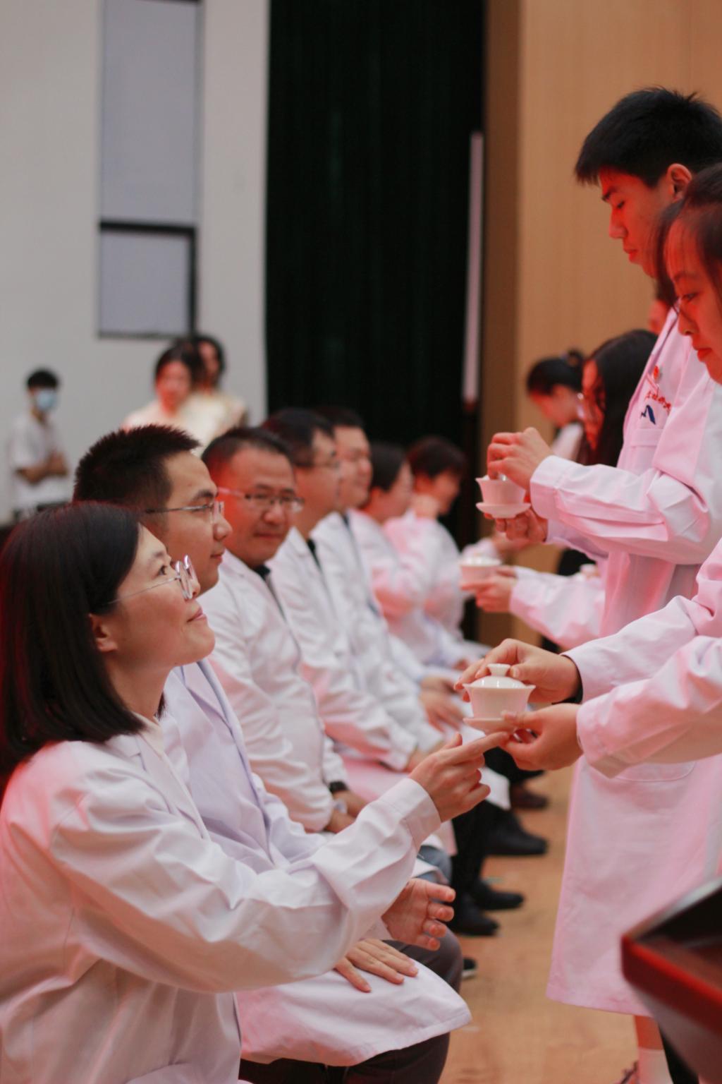 尊師重道,薪火相傳培育人才。同學(xué)們以敬茶和獻(xiàn)花的方式感謝老師的指導(dǎo)和教誨,“黑發(fā)積霜織日月,粉筆無(wú)言寫(xiě)春秋?!遍}衛(wèi)院的影像學(xué)子們將學(xué)好專(zhuān)業(yè)知識(shí),以?xún)?yōu)異的成績(jī)報(bào)效祖國(guó),服務(wù)人民,貢獻(xiàn)社會(huì)。