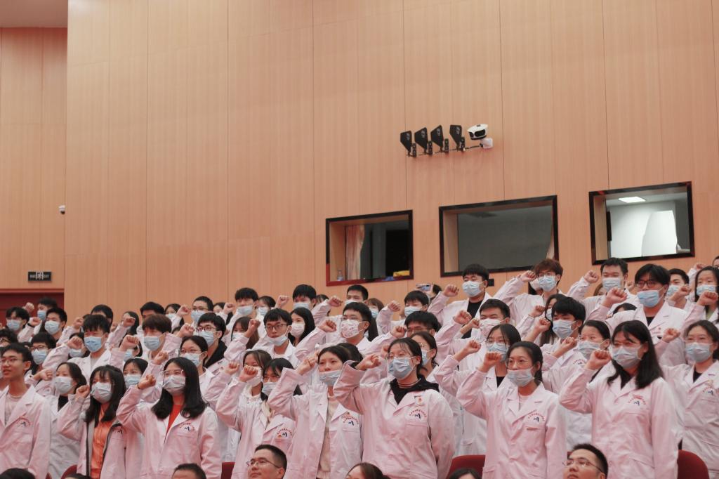 莊嚴(yán)宣誓,不忘初心立志成才。在影像教研室俞裕艷老師的領(lǐng)誓下,同學(xué)們高舉右拳宣誓:“我決心獻(xiàn)身醫(yī)學(xué)影像技術(shù)事業(yè),大醫(yī)精誠(chéng),全心全意,待患如親,維護(hù)患者權(quán)益……”錚錚誓言,飽含學(xué)子們?yōu)獒t(yī)學(xué)影像事業(yè)貢獻(xiàn)力量的決心。