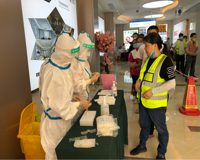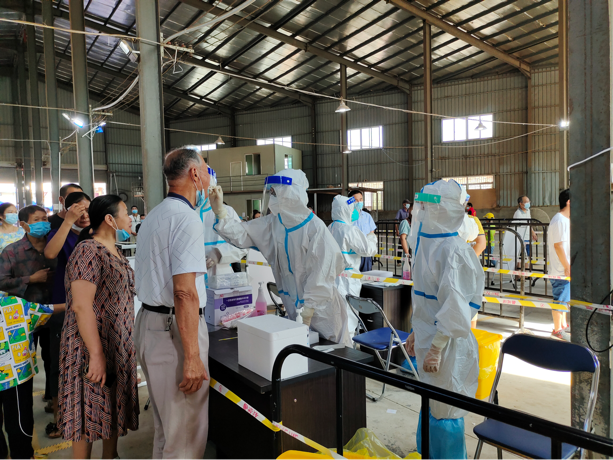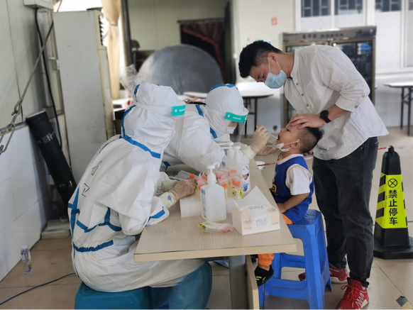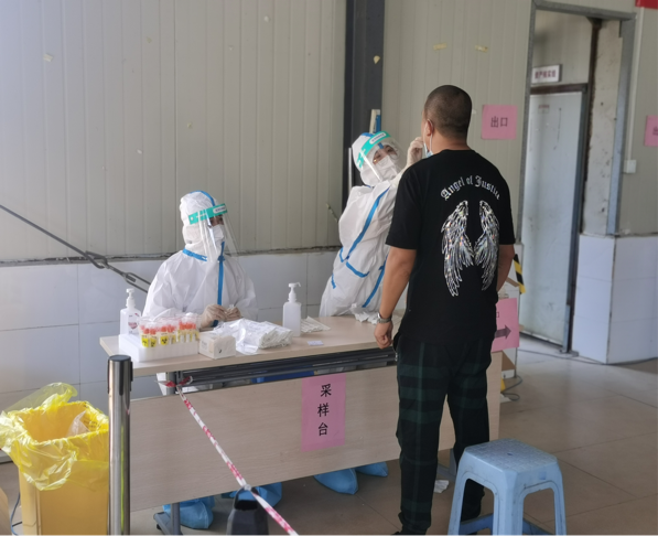 到達實戰(zhàn)演練場地后,大家迅速穿好防護服,分工合作,有條不紊地開始核酸檢測。盡管天氣炎熱,但是隊員們還是以堅強的意志、規(guī)范的操作圓滿完成核酸檢測任務,為構筑疫情防線貢獻了自己的力量。