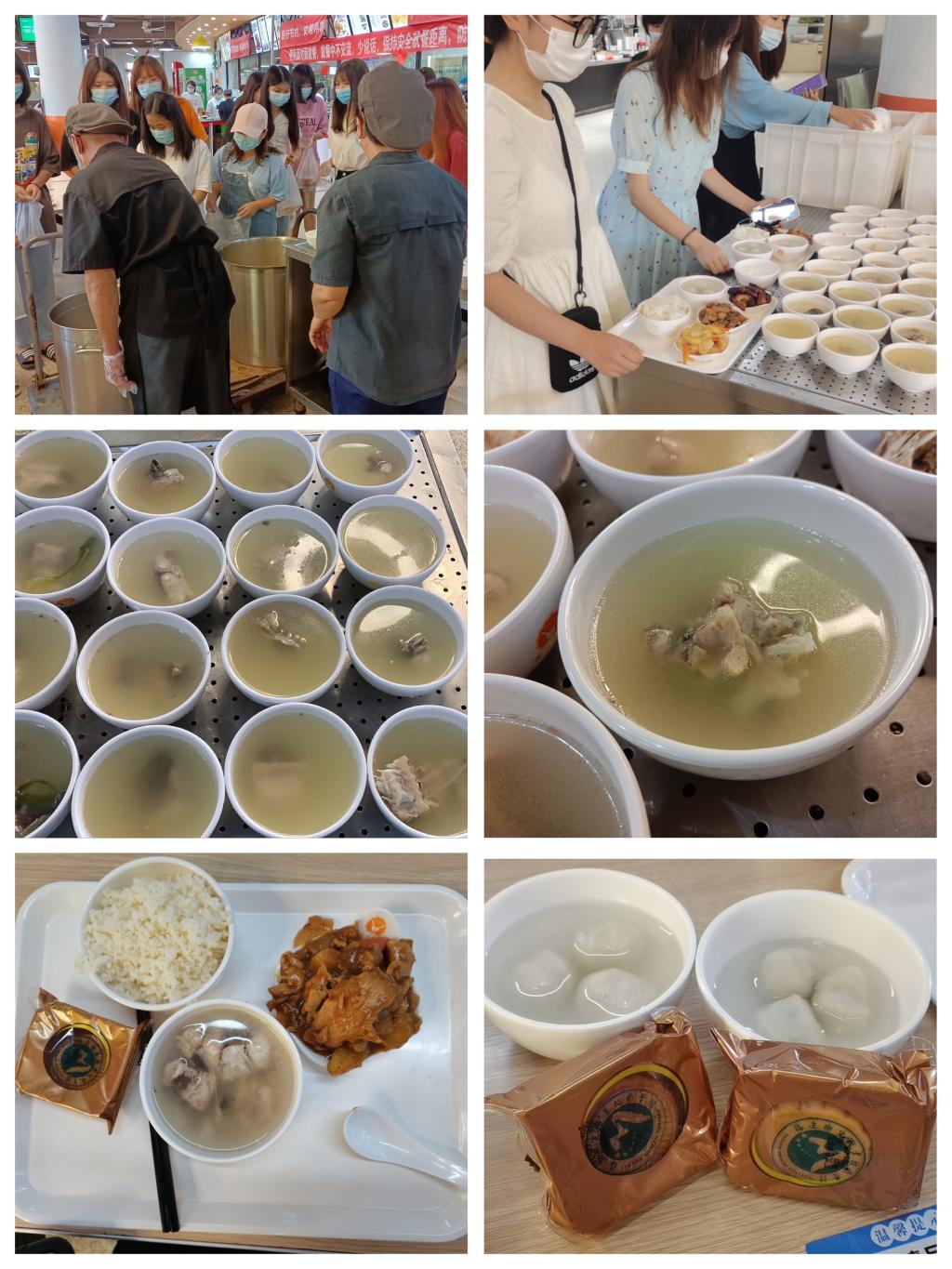 學(xué)校后勤管理處工作人員在校內(nèi)明湖捕撈出800多斤活魚(yú),這些新鮮肥美的魚(yú)由校內(nèi)三個(gè)餐廳加工精心烹飪成鮮美的魚(yú)湯,中秋節(jié)當(dāng)日供學(xué)生免費(fèi)品嘗。此外,學(xué)校食堂于9月21日中秋節(jié)當(dāng)日向用餐師生免費(fèi)供應(yīng)西紅柿蛋湯、玉米排骨湯、魚(yú)丸湯等愛(ài)心營(yíng)養(yǎng)湯品。