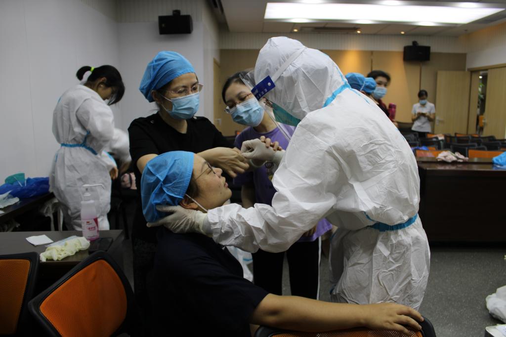 9月17日,護(hù)理學(xué)院和醫(yī)學(xué)技術(shù)系首批共17名教師志愿者,前往福建省級機(jī)關(guān)醫(yī)院接受系統(tǒng)的“新型冠狀病毒核酸采樣培訓(xùn)”。