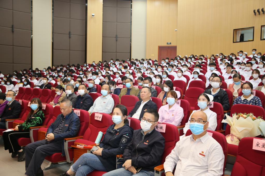 隨后,寧永鑫與師生分享了他帶領(lǐng)福建援鄂醫(yī)療隊(duì)在艱難危險(xiǎn)的環(huán)境下開展抗疫工作的難忘經(jīng)歷,重溫福建援鄂醫(yī)療隊(duì)感人事跡,以及抗疫歌曲《提燈女神》的創(chuàng)作歷程及背后的動(dòng)人故事。在武漢抗疫一線的58天中,福建援鄂醫(yī)療隊(duì)累計(jì)管理患者257人、治愈出院165人,向黨和人民交出了患者“零死亡”、醫(yī)護(hù)“零感染”的高分答卷,實(shí)現(xiàn)了出征前定下的“科學(xué)防護(hù),科學(xué)救治,完成任務(wù),平安返回”的目標(biāo)。在抗疫期間,福建援鄂醫(yī)療隊(duì)有63位隊(duì)員向黨組織遞交入黨申請(qǐng)書,11名同志在抗“疫”一線火線入黨,28名隊(duì)員被推薦為入黨積極分子。同時(shí)積極開展“八閩醫(yī)護(hù)心向黨”主題黨日活動(dòng)、“學(xué)習(xí)張定宇,抗疫做貢獻(xiàn)”系列等活動(dòng),不斷凝聚戰(zhàn)“疫”合力,充分發(fā)揮了黨組織的堅(jiān)強(qiáng)戰(zhàn)斗堡壘作用。