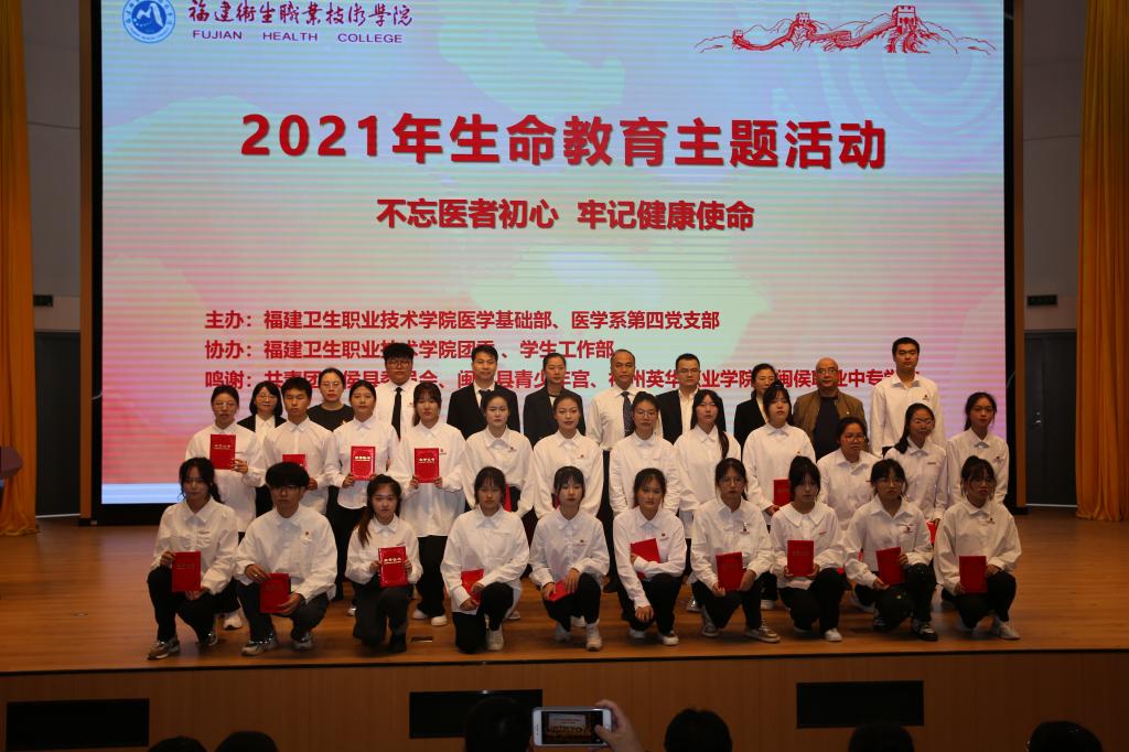 11月18日,我校舉辦以“不忘醫(yī)者初心,牢記健康使命”為主題的2021級新生生命教育系列活動。校長許能鋒,團(tuán)委、學(xué)生工作部、醫(yī)學(xué)系負(fù)責(zé)人,醫(yī)學(xué)基礎(chǔ)部全體教師、輔導(dǎo)員代表、各系2021級學(xué)生代表、第二課堂學(xué)生參加活動,閩侯縣團(tuán)委、閩侯縣青少年宮、福州英華職業(yè)學(xué)院、閩侯職業(yè)中專學(xué)校師生代表受邀出席,共有397人參加此次活動。