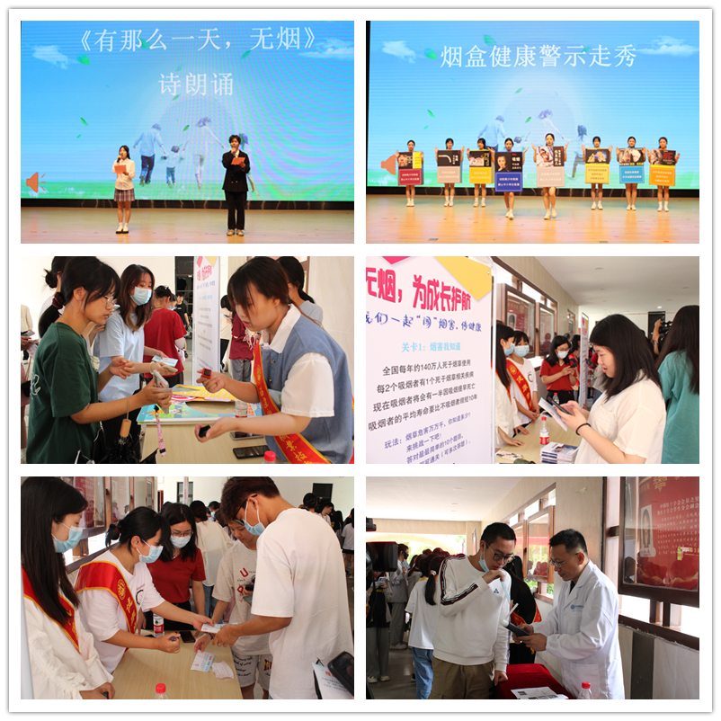 我校學生還進行了《有那么一天,無煙》朗誦表演、煙盒健康警示走秀?;顒蝇F(xiàn)場通過控煙宣傳展板展示、“闖煙害,傳健康”無煙日闖關打卡、“吸煙有害健康”和“公共場所控煙”科普知識宣傳,營造控煙氛圍,進一步增強廣大學生的控煙意識。