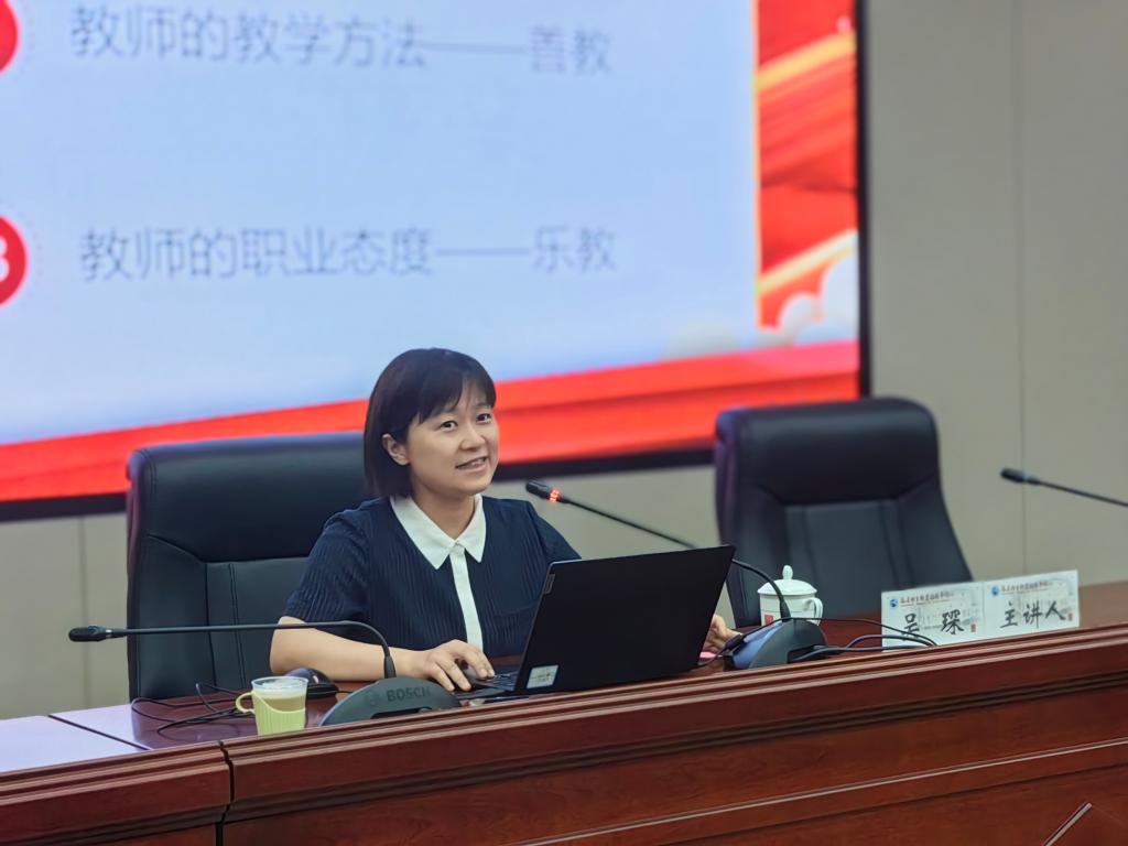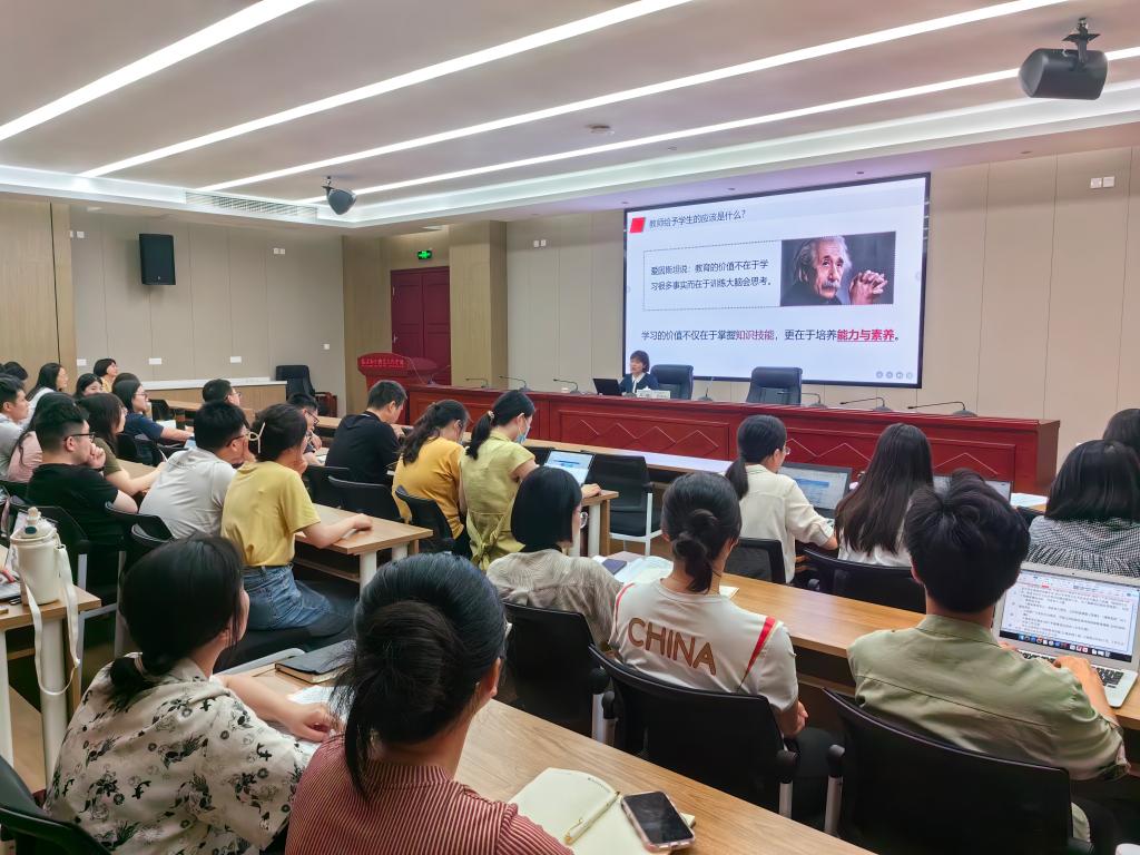 她強(qiáng)調(diào),教育是一門“仁而愛人”的事業(yè),嚴(yán)愛相濟(jì),潤己澤人,有愛才有責(zé)任。她勉勵(lì)在座的教師們要不忘教育初心,牢記育人使命,做一名知教、善教、樂教的人民教師。