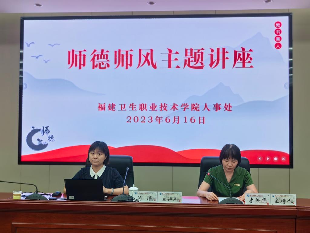為貫徹落實(shí)教育部師德師風(fēng)建設(shè)工作推進(jìn)暨師德集中學(xué)習(xí)教育啟動部署會的要求,推進(jìn)我校教師師德師風(fēng)建設(shè),規(guī)范教師職業(yè)行為,促進(jìn)教師素質(zhì)提升,2023年6月16日,我校邀請福建工程學(xué)院副院長吳琛教授,為新進(jìn)教師及中青年教師代表作師德師風(fēng)主題講座,講座由黨委副書記李美華主持。