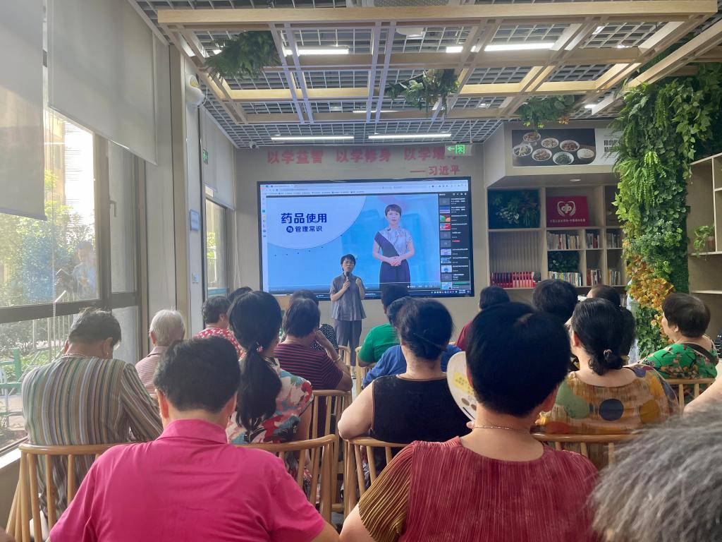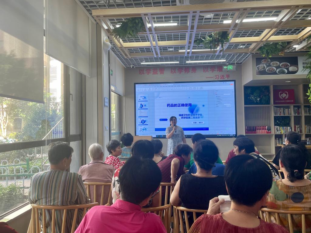活動(dòng)伊始,藥學(xué)院第二黨支部書記劉丹丹帶來的科普小講座《藥品的使用與管理常識(shí)》,為社區(qū)聽眾科普了如何區(qū)分藥品與非藥品以及如何判別合格藥品與假劣藥品。接著,潘雪豐老師詳細(xì)地為社區(qū)居民講解了《藥品的正確使用》,如藥品的服用時(shí)間、食物對藥物的影響、常用制劑的用法與注意事項(xiàng)等,從日常用藥小知識(shí)出發(fā),引導(dǎo)社區(qū)居民安全合理用藥。