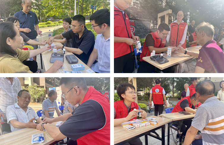 科普講座后,全體黨員為在場群眾免費(fèi)進(jìn)行用藥咨詢、血糖檢測等,熱情解答社區(qū)居民用藥疑慮,向社區(qū)居民展示家庭醫(yī)藥箱中常備的藥品,詳細(xì)講解各類藥品的正確服用方法和注意事項(xiàng),并特別強(qiáng)調(diào)了過期藥品的危害,提醒居民們要時(shí)刻關(guān)注藥品有效期,避免誤服過期藥品帶來健康風(fēng)險(xiǎn)。在血糖監(jiān)測過程中,針對居民提出的血糖問題,黨員們耐心細(xì)致地進(jìn)行解答,并給予個(gè)人健康指導(dǎo),體現(xiàn)教師們服務(wù)社會(huì)、服務(wù)人民的高尚情懷。