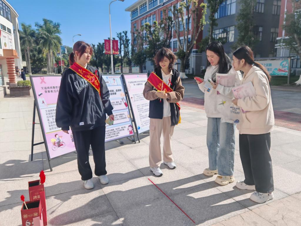 活動現(xiàn)場,志愿者們發(fā)放防治艾滋病宣傳冊并對其詳細(xì)講解,普及艾滋病的基礎(chǔ)知識,包括傳播途徑、早期癥狀、危害及預(yù)防措施等核心內(nèi)容。通過案例分析和互動問答,加深了師生對艾滋病的理解,提升了他們的自我保護(hù)意識。