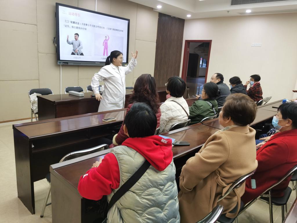 盡管天氣濕冷,但師生們的熱忱不減。活動(dòng)伊始,醫(yī)學(xué)院葉汝萍老師以通俗易懂的語(yǔ)言,圍繞老年女性常見(jiàn)的健康問(wèn)題、老年女性的特殊生理狀態(tài)、春節(jié)如何養(yǎng)生等主題展開(kāi)了詳細(xì)講解。講座過(guò)程中,老師不僅分享了專(zhuān)業(yè)的醫(yī)學(xué)知識(shí),還通過(guò)生動(dòng)的案例分析和親身示范,讓老年學(xué)員們深刻認(rèn)識(shí)到健康生活方式的重要性、科學(xué)性?;?dòng)環(huán)節(jié),學(xué)員們積極提問(wèn),老師耐心解答,現(xiàn)場(chǎng)氣氛熱烈。