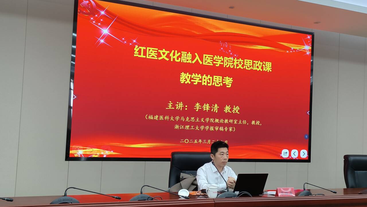 為全面落實(shí)立德樹人根本任務(wù),進(jìn)一步推動(dòng)思政課教學(xué)改革創(chuàng)新,引導(dǎo)全校師生傳承紅色基因,感悟紅醫(yī)精神,3月27日,我校邀請(qǐng)福建醫(yī)科大學(xué)馬克思主義學(xué)院毛澤東思想和中國(guó)特色社會(huì)主義理論體系概論教研室主任李鋒清教授作題為《紅醫(yī)文化融入醫(yī)學(xué)院校思政課教學(xué)的思考》專題講座。講座由馬克思主義學(xué)院副院長(zhǎng)來朋珍主持,馬克思主義學(xué)院全體專兼課教師、學(xué)生代表參加。