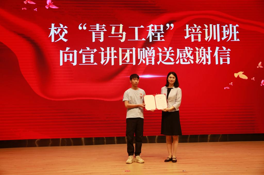 學(xué)生代表向宣講團(tuán)贈(zèng)送感謝信