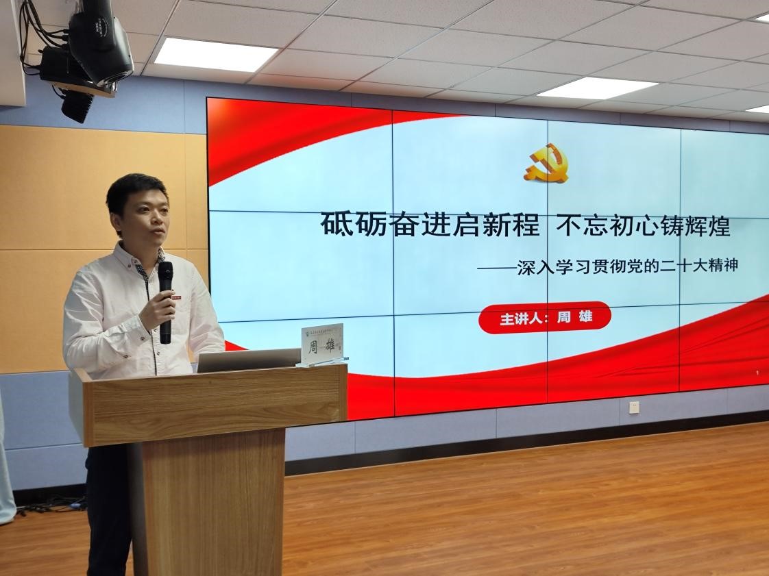 周雄指出,黨的二十大是在全黨全國各族人民邁上全面建設社會主義現(xiàn)代化國家新征程、向第二個百年奮斗目標進軍的關鍵時刻召開的一次十分重要的大會。我們要更加緊密地團結在以習近平同志為核心的黨中央周圍,高舉中國特色社會主義偉大旗幟,全面貫徹習近平新時代中國特色社會主義思想,深刻領悟“兩個確立”的決定性意義,增強“四個意識”、堅定“四個自信”、做到“兩個維護”,弘揚偉大建黨精神,自信自強、守正創(chuàng)新,踔厲奮發(fā)、勇毅前行,為全面建設社會主義現(xiàn)代化國家、全面推進中華民族偉大復興而團結奮斗。