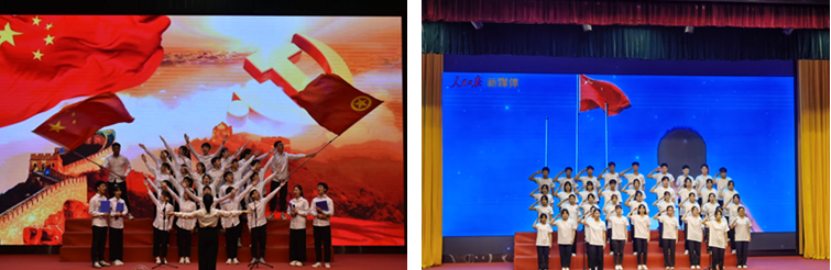 朗誦片段《少年中國說》及大合唱《我的未來不是夢》告訴同學們只有堅定信心,才會圓夢;朗誦、大合唱《醫(yī)路向前—致敬最美逆行者》表達了對最美逆行者的崇高敬意。
