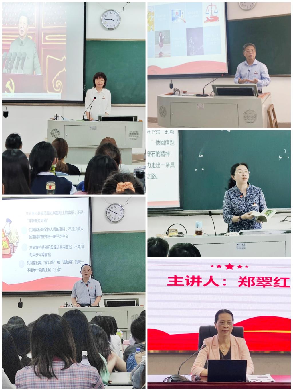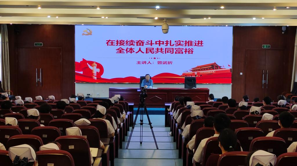 李美華、游鋒、陳貞健、黃銘珊、鄭翠紅帶領(lǐng)廣大師生回顧了我校在“十三五”期間,建設(shè)資助工作規(guī)范化的學(xué)生資助中心、精準(zhǔn)幫扶經(jīng)濟困難學(xué)生完成學(xué)業(yè),為社會培訓(xùn)鄉(xiāng)村醫(yī)生、輸送醫(yī)療護理員等助力共同富裕取得的實績。在此基礎(chǔ)上展望了我?!笆奈濉币?guī)劃的發(fā)展藍圖。通過他們的宣講,廣大師生受益匪淺,充分認(rèn)識到征途漫漫,惟有奮斗,只要堅持不懈地以實干創(chuàng)實績、以奮斗促富裕,定能匯聚起磅礴力量,讓共同富裕的美好圖景展現(xiàn)在神州大地。