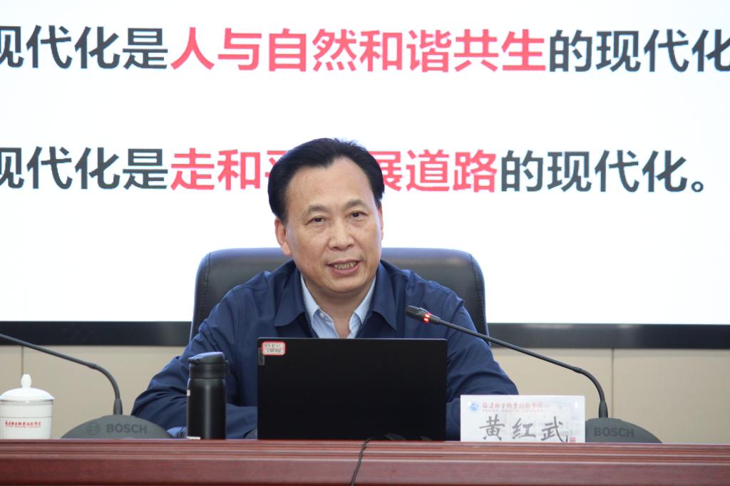 開班式后,學(xué)校邀請福建省教育廳原廳長、廈門大學(xué)講座教授、博士生導(dǎo)師黃紅武作專題輔導(dǎo)報告。黃紅武教授圍繞黨的二十大精神,從中國式高等教育現(xiàn)代化、幾組需要厘清的概念、辦學(xué)治校的若干經(jīng)歷三個方面展開深入的闡述,對推動我校主題教育深入開展具有十分重要的指導(dǎo)意義。