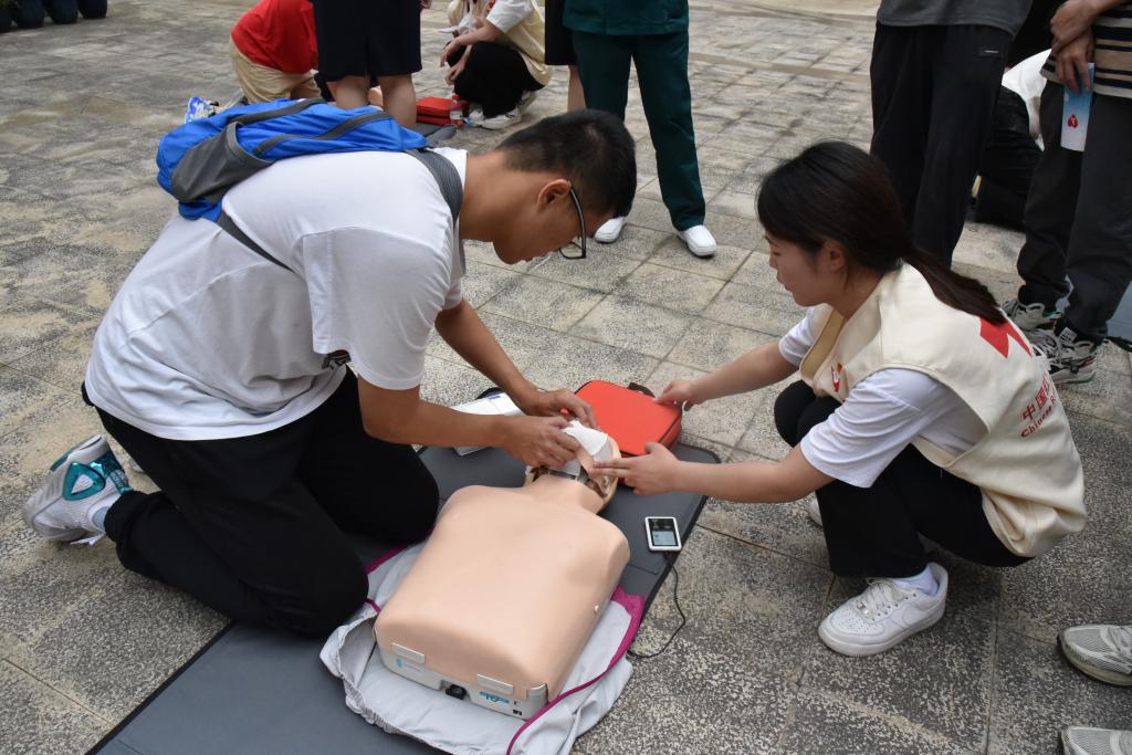 培訓尾聲,為檢驗學習培訓成果,進行了心肺復蘇術(shù)現(xiàn)場考核,開展技能考核比拼,指導幫助操作中存在的不足,并親身示范正確、規(guī)范的動作要領(lǐng)。
