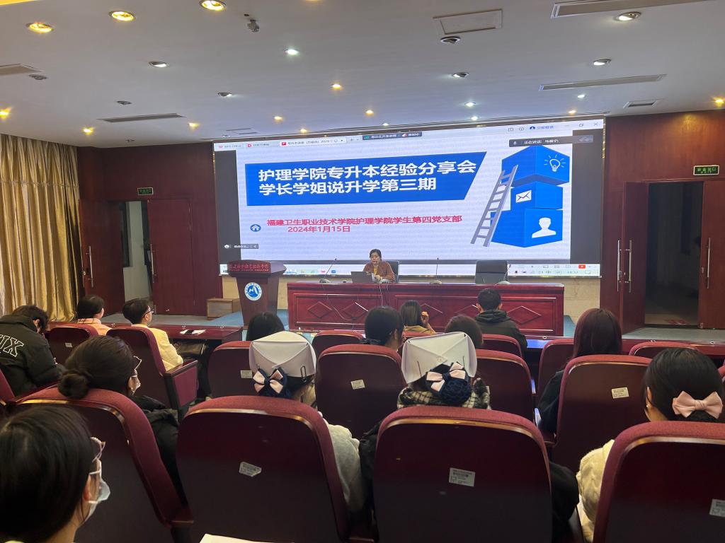 為加深同學(xué)們對(duì)職業(yè)規(guī)劃的清晰認(rèn)識(shí),對(duì)專(zhuān)升本的考試有更加充分的準(zhǔn)備,護(hù)理學(xué)院學(xué)生第四黨支部于1月15日通過(guò)線(xiàn)上和線(xiàn)下相結(jié)合的方式開(kāi)展“學(xué)長(zhǎng)學(xué)姐說(shuō)升學(xué)”主題講座,本次分享會(huì)邀請(qǐng)到了我校22屆畢業(yè)升學(xué)入莆田學(xué)院的程王璐、陳巖平作為特邀嘉賓分享他們的備考經(jīng)驗(yàn)。