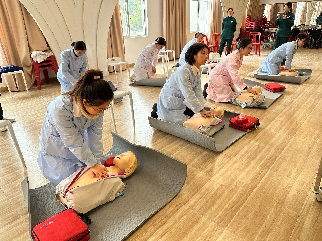 此次培訓(xùn)活動(dòng)以我院美國心臟協(xié)會(huì)(AHA)培訓(xùn)中心為主導(dǎo),面向護(hù)理學(xué)院青年教師開展普及現(xiàn)場心肺復(fù)蘇急救技術(shù)的培訓(xùn)。AHA是全球心血管領(lǐng)域最權(quán)威的專業(yè)組織之一。長期致力于全球范圍內(nèi)培訓(xùn),旨在推廣心肺復(fù)蘇(CPR)技術(shù)在專業(yè)醫(yī)療救護(hù)人員與公眾的普及。導(dǎo)師們通過視頻教學(xué)、現(xiàn)場模擬、交流互動(dòng)等方式,精準(zhǔn)指導(dǎo)學(xué)員領(lǐng)會(huì)每一個(gè)細(xì)節(jié)動(dòng)作。參訓(xùn)人員依次有序進(jìn)行技能培訓(xùn),導(dǎo)師們手把手地教,學(xué)員一絲不茍認(rèn)真地學(xué)。最終,所有學(xué)員均通過理論和技能考試。