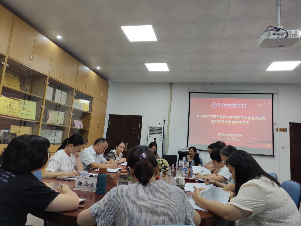 按照省委、省委教育工委和學(xué)校黨委部署要求,8月23日,醫(yī)學(xué)技術(shù)系黨總支召開(kāi)學(xué)習(xí)貫徹習(xí)近平新時(shí)代中國(guó)特色社會(huì)主義思想主題教育專題民主生活會(huì)。學(xué)校主題教育協(xié)調(diào)推進(jìn)三小組組長(zhǎng)、校紀(jì)委書(shū)記游鋒到會(huì)指導(dǎo)并作點(diǎn)評(píng)。黨總支書(shū)記柯瓊鶯主持會(huì)議,黨總支委員參加會(huì)議。