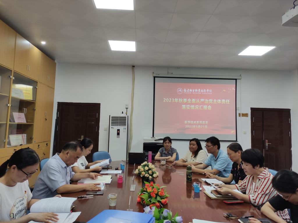 醫(yī)學技術(shù)系黨總支書記柯瓊鶯代表黨總支匯報2022年主體責任檢查發(fā)現(xiàn)問題整改落實情況、2023年全面從嚴治黨主體責任落實情況及典型經(jīng)驗做法。