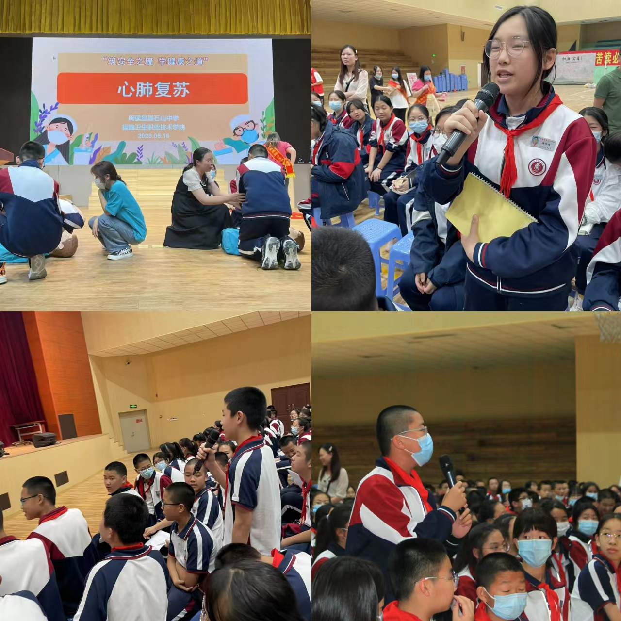 為推進(jìn)主題教育走深走實(shí),普及健康知識(shí),提升中學(xué)生健康素養(yǎng),5月16日下午,健康管理系聯(lián)合閩侯縣疾控中心走進(jìn)閩侯縣曇石山中學(xué)開(kāi)展健康宣教活動(dòng)。活動(dòng)圍繞著結(jié)核病防治、學(xué)生心理健康、急救知識(shí)健康宣講與趣味互動(dòng)游戲展開(kāi)宣教活動(dòng),本次活動(dòng)由健康管理管理黨總支第一支部和閩衛(wèi)院結(jié)核病防治宣傳隊(duì)主辦。