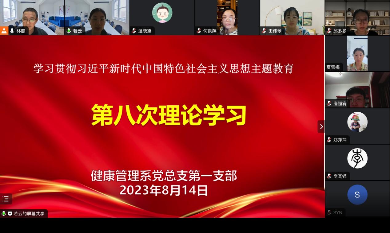 為深入開展學習貫徹習近平新時代中國特色社會主義思想主題教育走深走實,堅持讀原著學原文悟原理,8月14日,健康管理系黨總支第一支部以線上會議形式召開第八次專題理論學習活動。