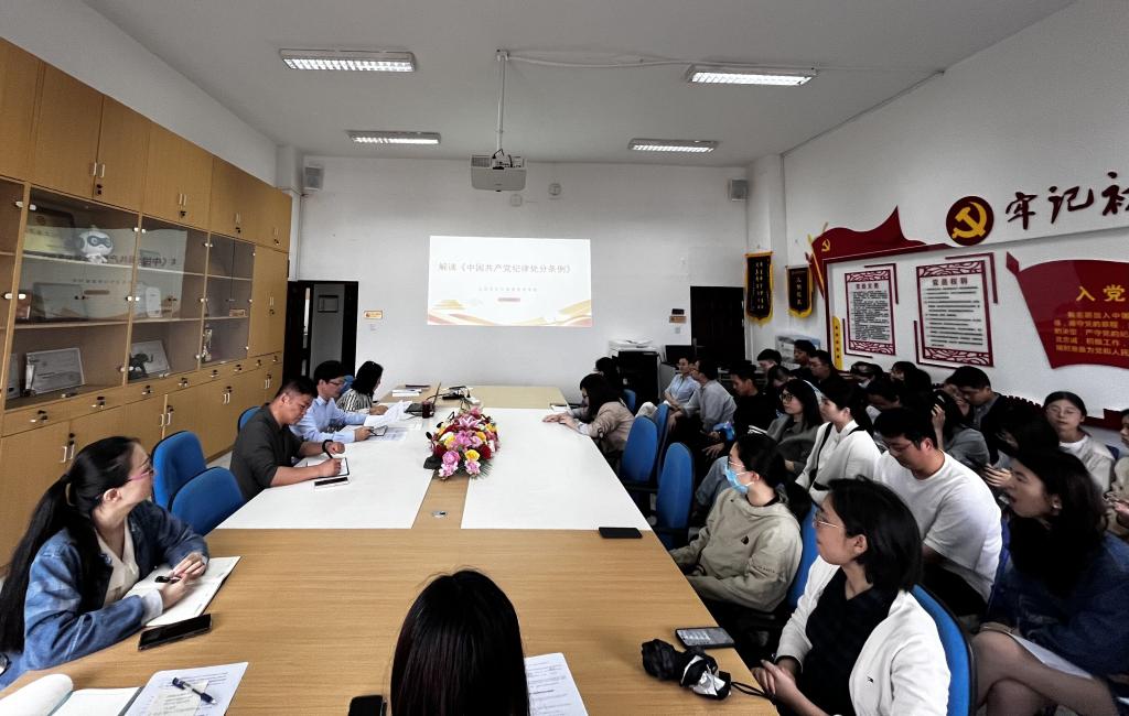 為深入學習貫徹習近平總書記關于黨紀學習教育的重要講話和重要指示精神,扎實有效開展黨紀學習教育。4月25日,學院黨總支副書記董東開展《中國共產(chǎn)黨紀律處分條例》專題黨課,學院全體教職工參會。