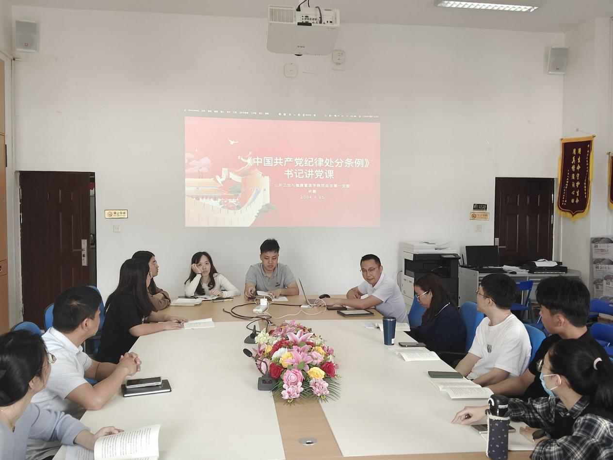 2024年4月25日,公共衛(wèi)生與健康管理學院黨總支第一支部在會議室召開了《中國共產(chǎn)黨紀律處分條例》第二次學習,會上支部書記林麒進行了學習貫徹《中國共產(chǎn)黨紀律處分條例》進行了動員,深入學習領(lǐng)會習近平總書記關(guān)于黨紀學習教育的重要講話和重要指示精神,認真學習《條例》,并舉行書記講黨課活動。